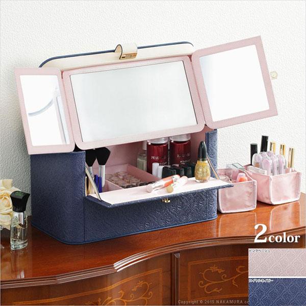大容量 ワイドタイプ 鏡付き メイクボックス アラベスク 三面鏡 コスメボックス 持ち運び おしゃれ バニティケース 化粧箱 F Mb A Houseboat 通販 Yahoo ショッピング
